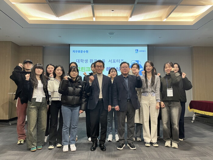 사진/대학생 환경교육 서포터즈 ‘그린크루 1기’가 해단식에서 함께하고 있다.(사진제공=수원시)