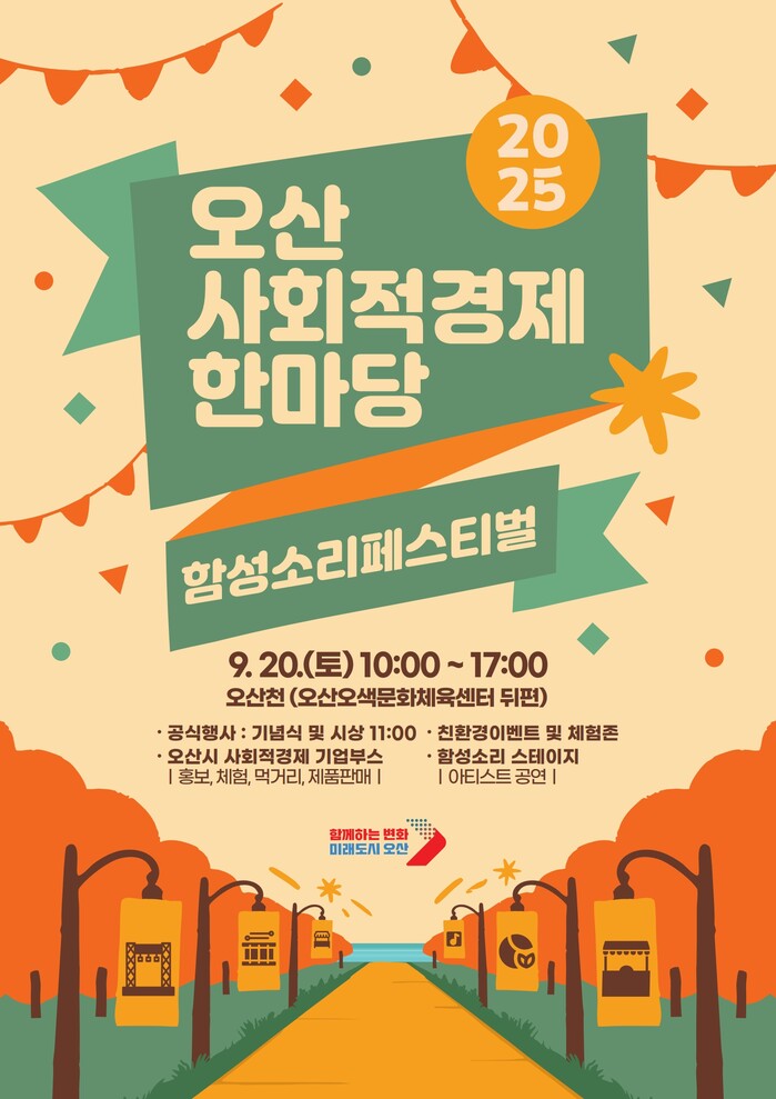 오산시(시장 이권재)가 사회적경제기업과 함께 지역경제에 활력을 불어넣고 시민이 체감하는 상생 문화를 확산하기 위해 ‘2025 사회적경제한마당’을 연다.