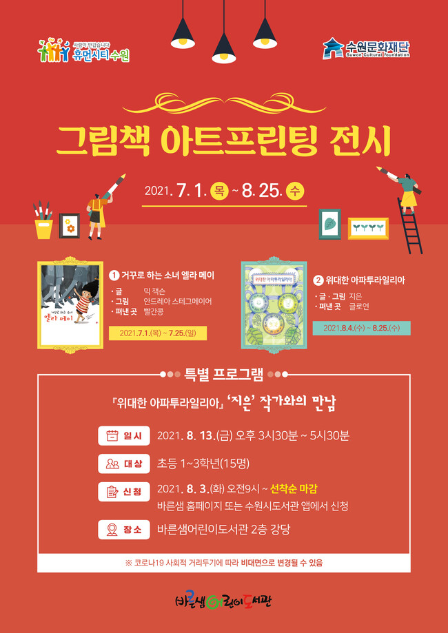 수원문화재단(대표 길영배) 바른샘어린이도서관은 여름방학을 맞이하여 ‘그림책 사랑꾼들, 도서관에서 만나다’ 프로그램 참여자를 모집한다.