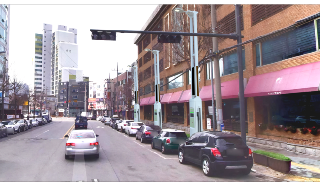 사진/가로등형 전기차 급속충전기 예상도.(※실제 설치 위치는 예상도 배경과 다름.)(사진제공=수원시)