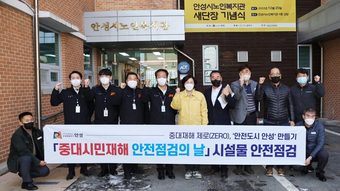 안성시(시장 김보라)는 지난 20일 ‘12월 중대시민재해 안전점검의 날’을 맞아 노약자 등 취약계층의 이용이 많은 안성시노인복지관에 대해 안성소방서 및 민간전문가와 합동점검을 실시했다.