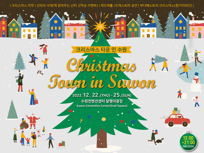 수원컨벤션센터가 12월 22~25일 오후 3시부터 9시까지 수원컨벤션센터 광장 일원에서 ‘2022 크리스마스 타운 인 수원’ 행사를 연다.