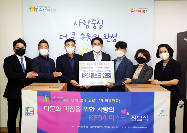 외국인 대상 교육·보험·통신서비스 사업 등을 하기 위해 지난 6월 권선구에 둥지를 튼 ㈜이프커넥트는 마스크 제조업체인 제이와이 이노센트㈜(안산시 상록구 소재)로부터 마스크 2만 매를 후원받아 수원시에 기부하게 됐다.