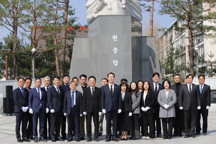 [화성=로컬라이프] 송준형 기자 = 정명근 화성특례시장은 예비후보 등록 첫날, 시·도의원과 후보자, 지지자 여러분과 함께 현충탑을 찾아 참배했다.