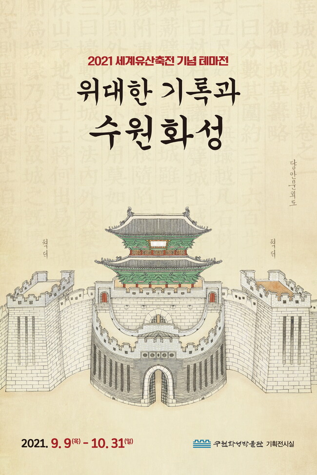 수원화성박물관이 9월 9일부터 10월 31일까지 박물관 기획전시실에서 2021년 세계유산축전 기념 테마전 ‘위대한 기록과 수원화성’을 연다.