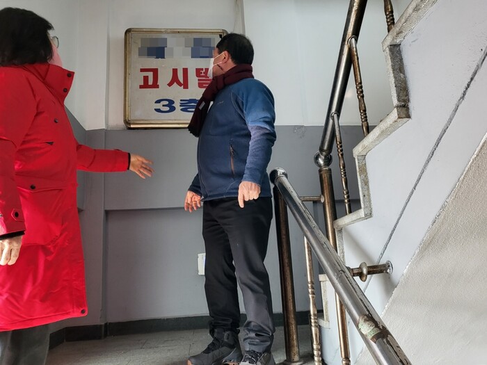 사진/김현광 팔달구청장이 28일 관내 고시원을 점검하고 있다.(사진제공=수원시)