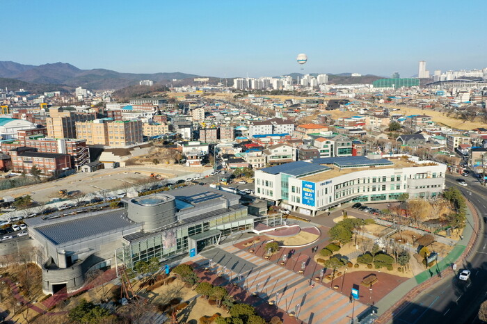 사진/ 수원시 중심부에 위치한 팔달구청(항공사진).(사진제공=수원시)