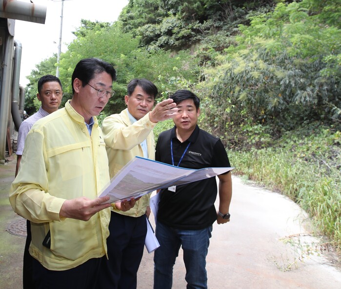 이날 정 시장은 관련 부서 관계자와 함께, 남양천 산책로를 방문해 하천변 출입 통제 시기 및 방법을 점검하고 신남리 소재 급경사지 방문해 사전 예찰 활동을 펼쳤다.
