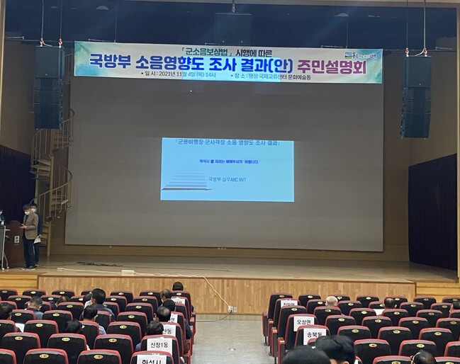 설명회는 「군용비행장・군사격장 소음방지 및 피해보상에 관한 법률(이하 군소음보상법)」에 의거 지난해 10월과 올해 6월까지 두 차례에 걸쳐 소음도를 측정했으며, 이에 대한 설명 및 질의응답 시간으로 진행됐다.