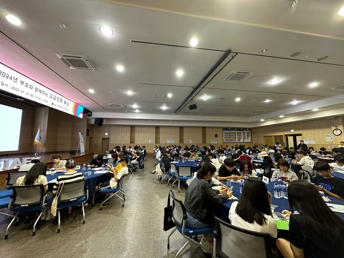 특강은 ‘부모와 함께하는 진로설계’를 주제로 △진로탐색 사전 검사 해석강연 △고교학점제 대비 현명한 진로진학설계 △부모와 함께하는 진로 로드맵 실습의 내용으로 부모와 자녀가 같이 참석해 이루어졌다.