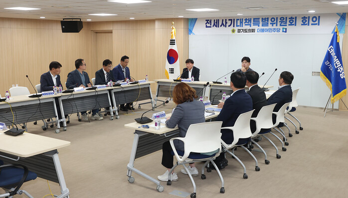 경기도의회 더불어민주당 전세사기대책특별위원회(위원장 김태형)가 8일(월) 경기도의회 중회의실에서 제2차 회의를 열고 전세사기와 관련한 경기도의 대응을 점검하고, 교섭단체 차원에서 대책 마련에 나섰다.