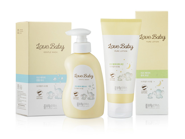 러브 베이비 2종은 풀무원의 정직함으로 유기농 및 천연 유래 성분을 더해 만든 제품으로, 바디제품인 ‘러브 베이비 젠틀 워시’와 고보습 ‘러브 베이비 퓨어 로션’으로 구성됐다. 국제적인 천연 및 유기농 화장품 인증제도인 코스모스(COSMOS-standard) 내추럴 등급 인증*을 받아 더욱 순하고 건강하게 피부를 지켜준다.