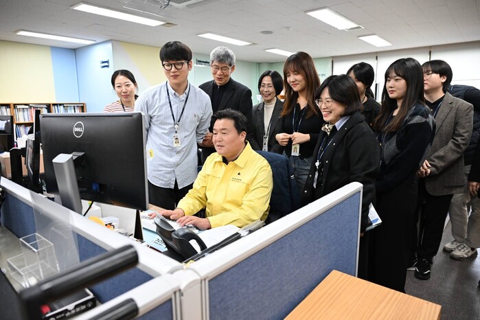 [시흥=로컬라이프] 송준형 기자 = 임병택 시흥시장은 평생학습과에 도입된 시흥시 내부행정망 인공지능 플랫폼 설치 여부를 알아보기 위해 방문했다.