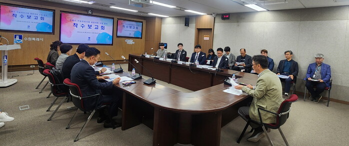 사진/수원시가 지능정보사회 종합계획 수립 용역 착수보고회를 열고 있다.(사진제공=수원시)
