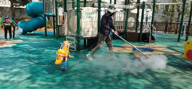 사진/영통구, 어린이놀이시설 소독 (사진제공=영통구)
