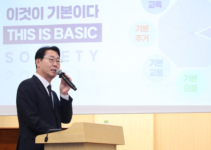 정명근 화성시장은 “어제의 지도로 오늘의 길을 찾을 수는 없다. 우리는 내일의 지도를 그린다”며 “과학기술의 발전으로 빠르게 변화하는 노동 환경과 기후 위기 등 우리 사회의 문제를 해결하기 위해 기본소득 정책을 도입하겠다”고 말했다.