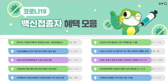 사진/‘코로나19 백신접종자 혜택모음’ 게시판 갈무리.(사진제공=수원시)