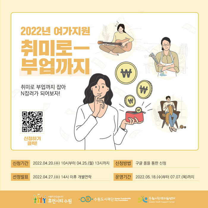 수원시청년지원센터는 ‘2022 여가지원-취미로 부업까지’ 상반기 프로그램을 청년바람지대에서 운영한다.