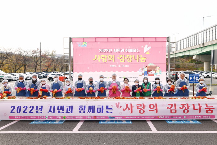 의왕시는 15일 백운호수 공영주차장에서 ‘2022년 시민과 함께하는 사랑의 김장나눔’ 행사를 개최했다.
