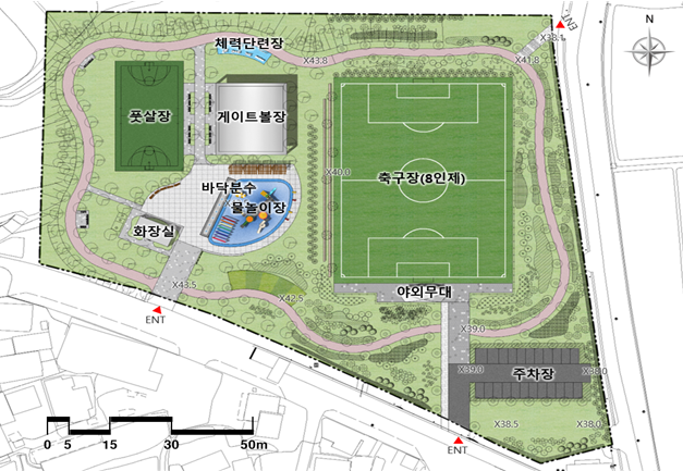 물놀이장, 바닥분수 조성사업으로 확보한 특별조정교부금(7억 원)과 개발제한구역 주민지원사업으로 확보한 국비(10억 원)로 올해 안에 1차분 공사를 완료하고, 일부 구간을 개방할 계획이다.