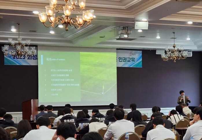 정재영 경기도 스포츠인권센터 교육팀장이 강의를 맡아 폭언과 폭력, 성폭행 등 스포츠 분야 인권 침해 사례와 예방법이 다뤄졌다.