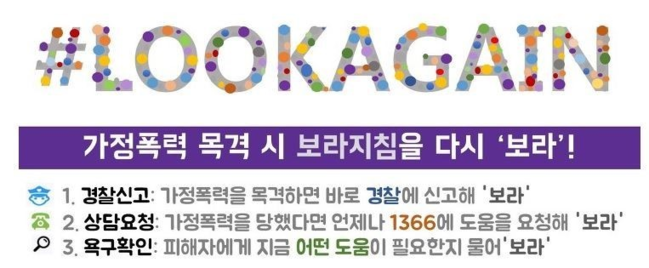안성시도 오는 4월 8일 지역주민과 밀접하게 소통하고 있는 기관.사회단체와 업무협약을 시작으로, 매월 8일 가정폭력 및 아동학대 예방을 위한 ‘안성맞춤 보라데이(Look Again)’ 릴레이 캠페인 활동을 추진하여 가정폭력 및 아동학대를 가정 내 문제로 치부하지 않고 사회문제라는 시민인식 개선의 계기를 마련할 계획이다.