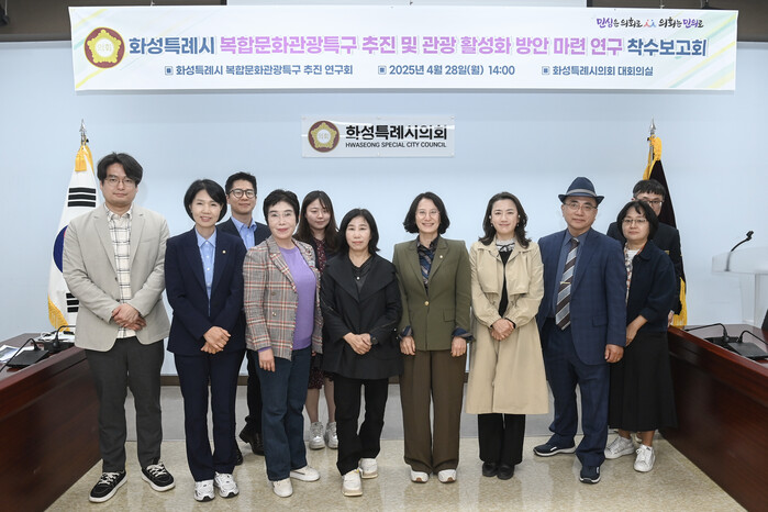 화성시의회 의원연구단체인 ‘화성특례시 복합문화관광특구 추진 연구회(대표의원 김경희)’가 28일 화성특례시의회에서 연구용역 착수보고회를 가졌다.