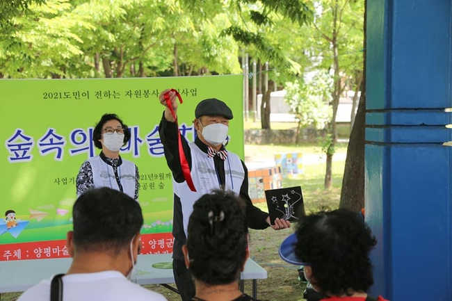 지난 4월, 경기도자원봉사센터의 ‘2021 도민이 전하는 자원봉사지원사업’에 우수 프로그램으로 선정되기도 한 ‘숲속의 마술치유’ 사업은 지역주민들과 함께 소통하며 많은 사람들이 자원봉사에 참여할 수 있는 문화를 조성하는 데에 그 공을 인정받기도 했다.