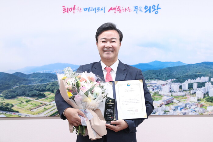 김성제 의왕시장이 25일 국회의사당의원회관에서 열린 2022 서울평화문화대상 시상식에서 ‘도시환경행정대상’을 수상했다.