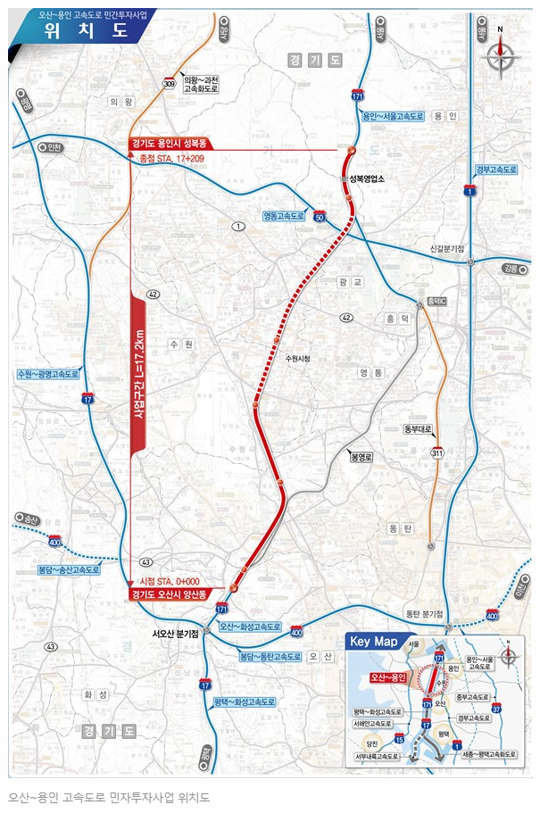 국토부가 2027년 완공을 목표로 추진하는 ‘오산~용인 고속도로 민간투자사업’은 서오산TG에서 수원을 거쳐 용인 서수지TG를 잇는 총 17.2㎞ 고속도로를 개설하는 사업이다. 수원 구간은 약 11㎞인데, 8.3㎞는 대심도(大深度) 터널로 시공될 예정이다.