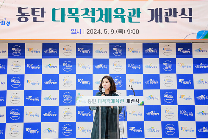 화성시의회 김경희 의장은 이날 축사에서“동탄다목적체육관이 개관되어 지역사회의 발전에 이바지할수 있게 되어 기쁘다”라고 하며,“동탄다목적체육관이 시민 체력 증진과 문화적 체험 장소가 되어 지역공동체의 징검다리 역할을 하는 복합공간이 되기를 바란다”라고 전했다.