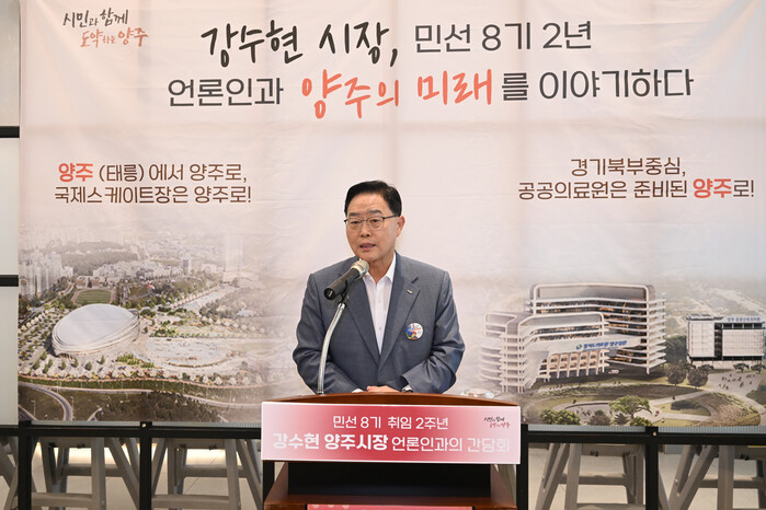 강수현 양주시장이 4일 오전 양주시청 출입기자단과 함께 지난 2년간 빛났던 시정 성과를 돌아보고 3년 차 시정 방향을 공유하는 소통의 시간을 가졌다.