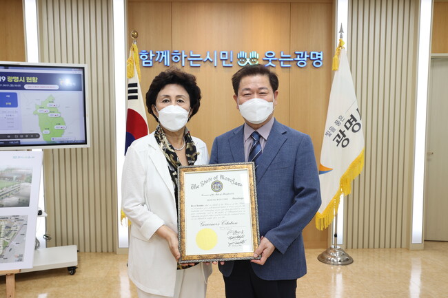 박승원 광명시장은 “미국 현지 교민과 메릴랜드주 시민들을 대표해 감사패를 준 래리 호건 주지사와 교류사업을 열정적으로 이끌어 주신 이영희 회장님께 감사드린다”며 “지금 우리가 겪고 있는 어려움을 이겨내고 빠른 시일 내에 일상이 회복되기를 간절히 바라며, 양국 간의 우호와 협력이 더욱 증진될 수 있도록 필요한 지원을 아끼지 않겠다”고 밝혔다.