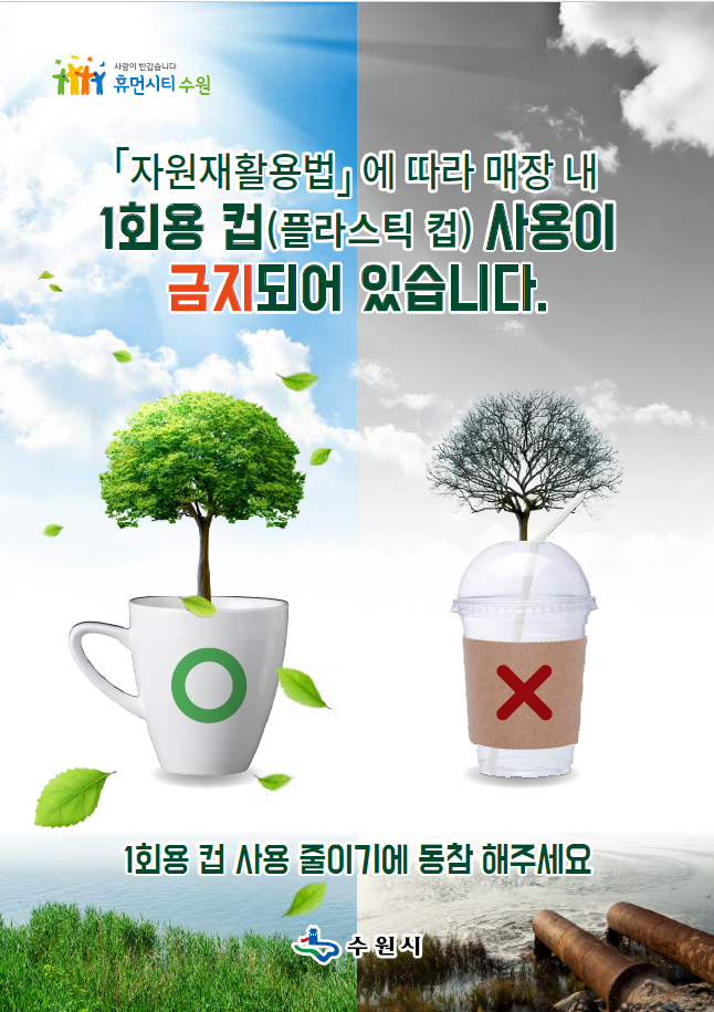 수원시는 홈페이지(https://www.suwon.go.kr) ‘시정소식’에 일회용품 사용 규제 관련 내용을 게시하고, 식품접객업소를 수시로 지도 점검하며 규제 내용을 안내할 예정이다.
