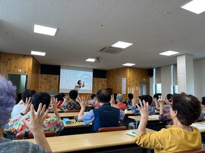 사진/노인대학 학생을 대상으로 치매예방교실을 진행하고 있다.(사진제공=수원시)