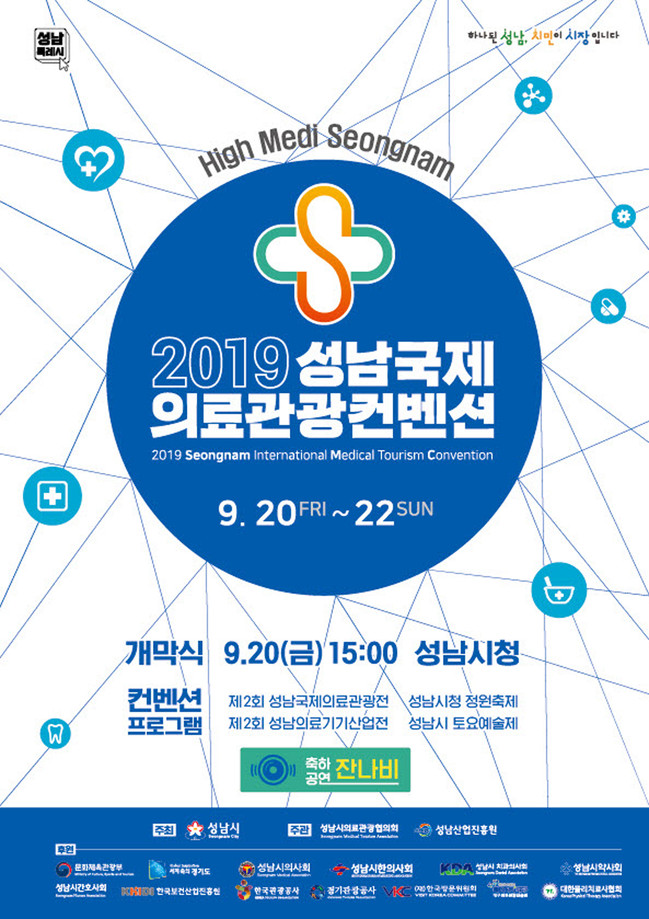 [성남=로컬라이프] 송준형 기자 = 의료관광과 의료기술 자원을 한 자리에서 만나볼 수 있는 ‘2019 성남국제의료관광컨벤션’ 행사가 오는 9월 20일부터 22일까지 사흘간 성남시청 일원에서 열린다.