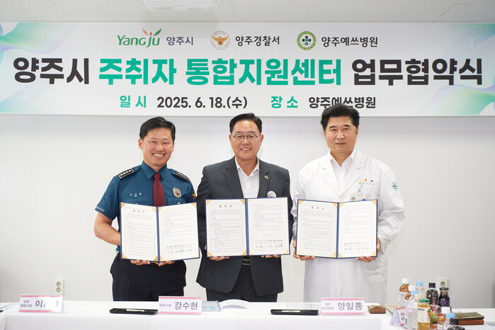 시는 18일 오후 덕정동에 소재한 ‘양주예쓰병원’에서 ▲양주경찰서(서장 이기범), ▲양주예쓰병원(원장 양일종)과 함께 ‘주취자 통합지원센터’ 운영을 위한 ‘3자 협약식’을 체결했다고 밝혔다.