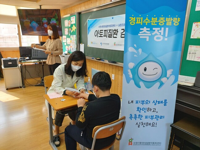 수원시환경성질환아토피센터와 ‘수원시 친환경 아토피 특성화학교’인 남창초등학교가 21일 재학생 111명을 대상으로 아토피질환 기초자료를 조사하고, 검진 프로그램을 진행했다.
