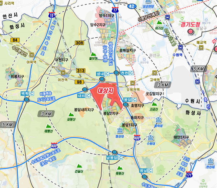 ‘화성봉담3 공공주택지구’ 는 국토교통부가 ‘공공주도 3080+, 대도시권 주택공급 확대방안’으로 2021년 8월 30일 발표한 사업지구로 화성시 행정경계 지역인 봉담읍 상리·수영리·내리, 매송면 천천리·원평리 일원에 2,286천㎡(약 69만평)에 인구 약 4만 2천명을 계획하고 있는 사업이다.