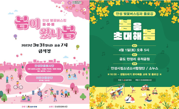안성시가 31일부터 4월 1일까지 이틀간에 걸쳐, 벚꽃 버스킹과 플로깅 행사 등 온 가족이 함께 즐길 수 있는 다채로운 이벤트를 진행한다.