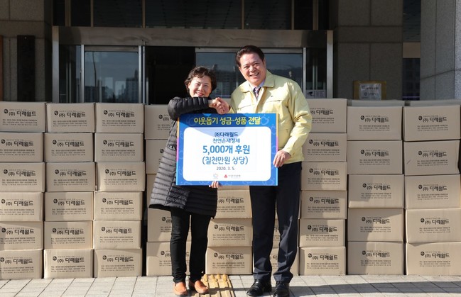 ㈜다래월드, 천연 손세정제 5천개 기증, ㈜네오스라이트는 1천만원 기부