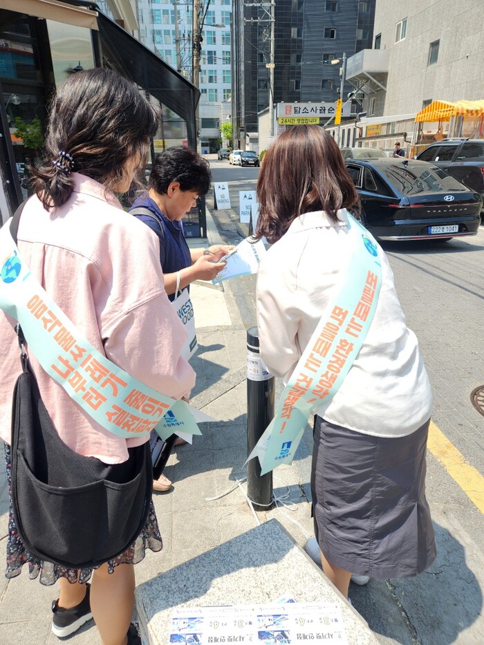 이날 거리 캠페인에는 주부 모니터링단 16명과 수원시 공직자 등이 참여했다. 주부 모니터링단은 시민들에게 올바른 음식물쓰레기 배출 준수사항과 음식물쓰레기 줄이기 점검표가 담긴 홍보물을 배포하고 시민들에게 협조와 참여를 요청했다.