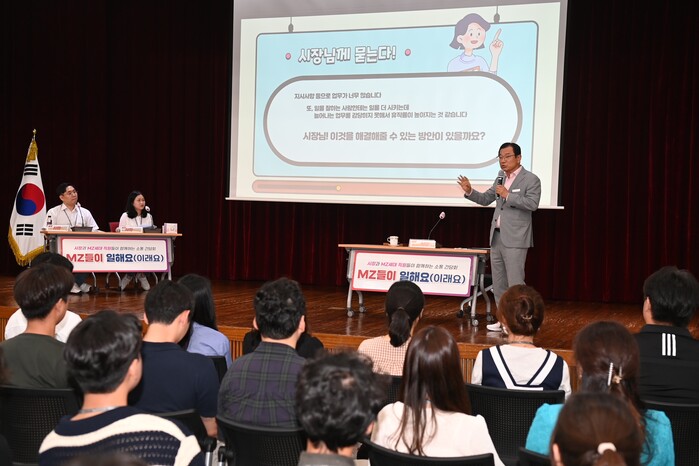 이 시장은 이날 시청 본관 대회의실에서 MZ세대 공무원 90여명이 참석한 가운데 열린 ‘MZ들이 일해요(이래요)’ 행사에서 열심히 일한 직원에게 성과상여금과 같은 금전적 보상이 필요하다는 MZ세대 공무원들의 요청에 이같이 말했다.