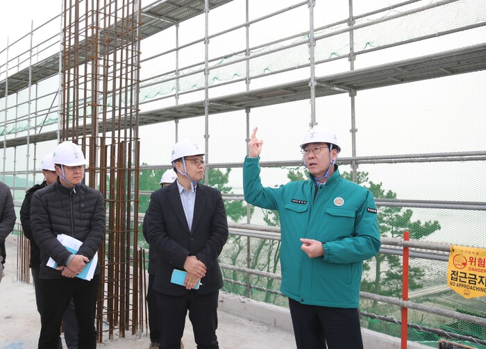 정명근 화성시장이 29일 서신면 궁평관광지 내 위치한 ‘화성 서해마루 유스호스텔 건립공사’ 현장을 찾아 해빙기 건설현장 안전사고 예방을 위한 안전점검에 나섰다.