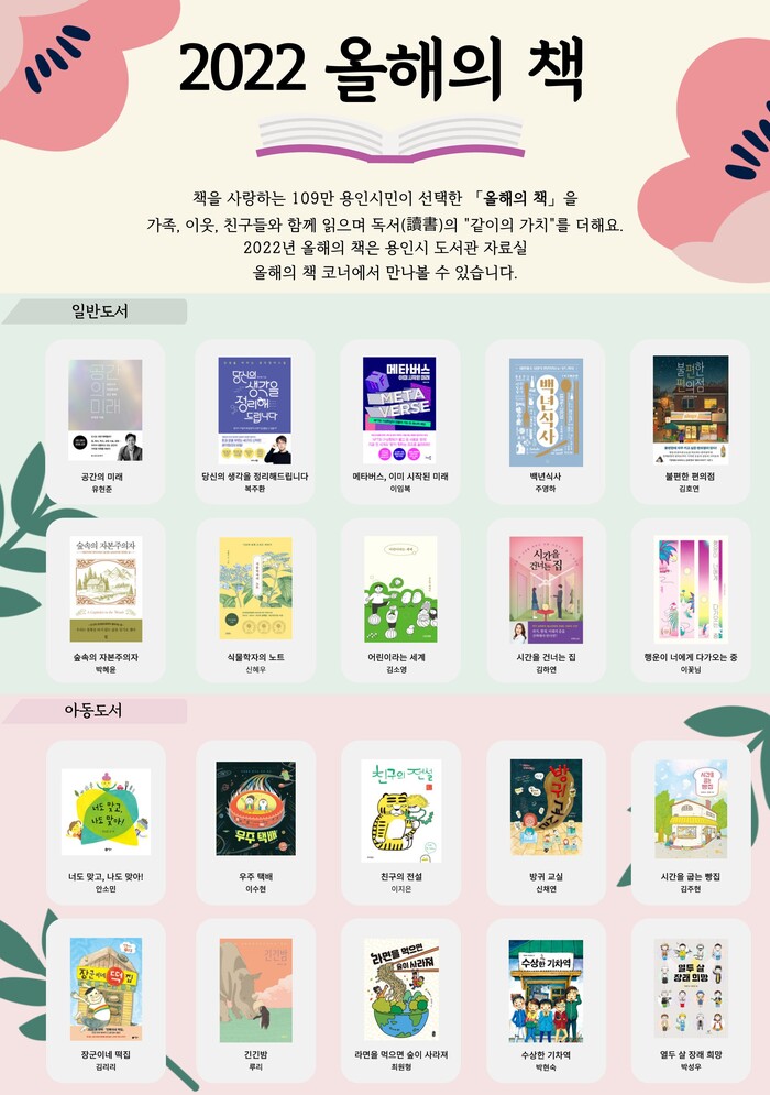 1만여 명의 용인시민들이 뽑은 ‘2022년 용인시 올해의 책’ 20권이 선정됐다.