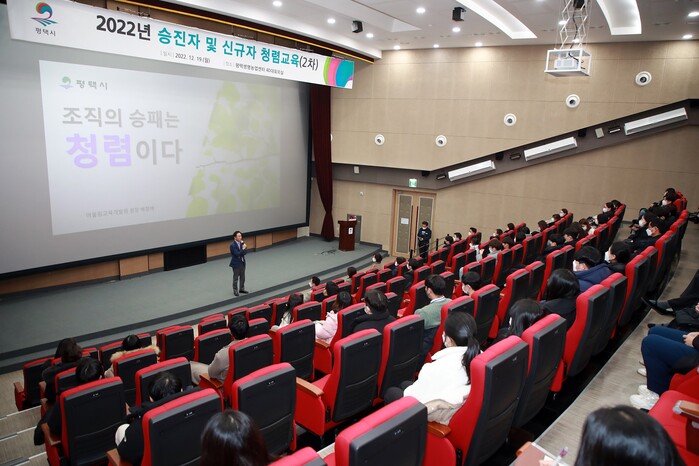 평택시(시장 정장선)는 지난 19일 평택생명농업센터 대회의실에서 2022년 하반기 승진자 및 신규 공직자 150여 명을 대상으로 청렴교육을 실시했다.