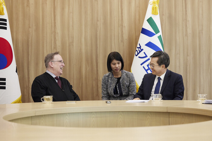 김 지사는 29일 오후 경기도청을 찾은 존 번 교수와 만나 “경기도는 대한민국에서 가장 선도적으로 기후변화 대응과 신재생에너지 확보하겠다고 천명했다. 저는 어제 ‘기후도지사’가 되겠다는 의지를 밝힌 바 있다”라며 “기후변화 분야에서 많은 업적을 쌓으셨는데 경기도의 이런 정책 방향에 대해 자문해 주시고, 앞으로 함께 협력했으면 한다”라고 말했다.