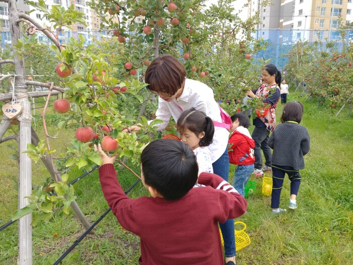 사진/ 과수공원 프로그램 체험 중인 참가자들(사진제공=수원시)