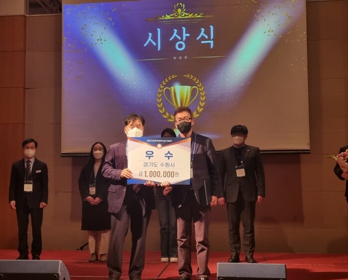 사진/장동규 수원시 후생복지팀장(오른쪽)이 수상하고 있다.(사진제공=수원시)