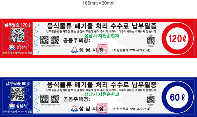 사진/성남시 공동주택 음식물쓰레기 ‘납부필증 종량제’ 스티커 2개 종류(사진제공=성남시)